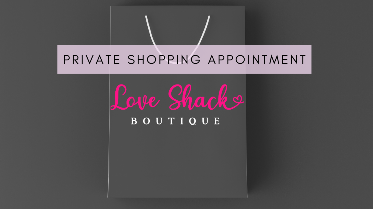 Book a private appointment to shop at Love Shack Boutique. Whether it’s just “you” or “you and your partner or friends”. You will have the entire boutique to yourself for the appointment time you choose. Private appointments are available every day of the week or weekend either before or after store hours. A $50 deposit will get you a $50 gift card to use in our boutique.